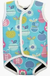Bazén se slanou vodou  vhodný  pro plavání kojenců a batolat odpovídající hygienickým normám pro kojenecké plavání.   Bazén má rozměry 6 x 8 m a voda v bazénu je  vyhřívaná na 28 C . Vzhledem ke slané vodě s menším množstvím chlorua a starší bazénové technologii je potřebné  dle doporučení Hygienické stanice hl.m.Prahy udržovat teplotu vody v tomto rozmezí tedy spíše ve nižším pásmu doporučené pro kojenecké  a batolecí plavání dle vyhlášky. Chceme však zajistit pro  děti komfortní plavání  a v této souvislosti i přesto , že teplota vody se nachází ve schváleném rozmezí doporučujeme  neoprenový obleček, pro děti do 1 roku je podmínkou pro vstup do bazénu. Neoprenové oblečky zakoupíte občas  i velmi levně  skoro v ceně plaveček – Splasch Aabout, www.mimiplus.cz, swimaholic.cz a další internetové obchody. Oblečky jsou k dispozici pro děti všech věkových kategorii. Model  nejvíce doporučeného oblečku se snadným oblékaním a silnějším neoprenem :
