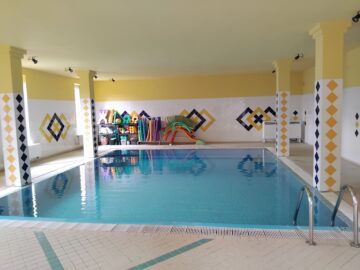 Bazén se slanou vodou  vhodný  pro plavání kojenců a batolat odpovídající hygienickým normám pro kojenecké plavání.   Bazén má rozměry 6 x 8 m a voda v bazénu je  vyhřívaná na 28 C . Vzhledem ke slané vodě s menším množstvím chlorua a starší bazénové technologii je potřebné  dle doporučení Hygienické stanice hl.m.Prahy udržovat teplotu vody v tomto rozmezí tedy spíše ve nižším pásmu doporučené pro kojenecké  a batolecí plavání dle vyhlášky. Chceme však zajistit pro  děti komfortní plavání  a v této souvislosti i přesto , že teplota vody se nachází ve schváleném rozmezí doporučujeme  neoprenový obleček, pro děti do 1 roku je podmínkou pro vstup do bazénu. Neoprenové oblečky zakoupíte občas  i velmi levně  skoro v ceně plaveček – Splasch Aabout, www.mimiplus.cz, swimaholic.cz a další internetové obchody. Oblečky jsou k dispozici pro děti všech věkových kategorii. Model  nejvíce doporučeného oblečku se snadným oblékaním a silnějším neoprenem :